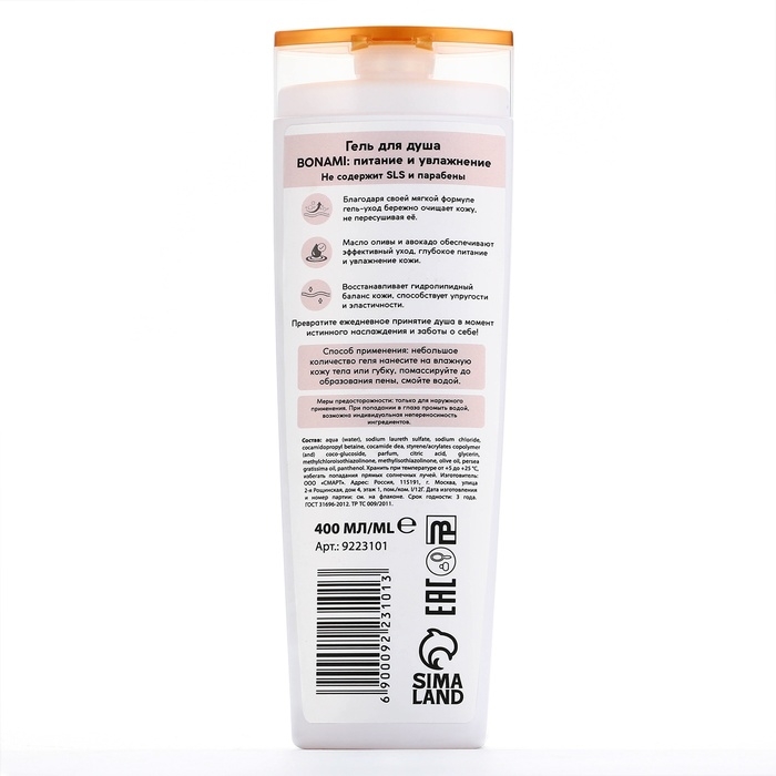 Гель для душа с пантенолом, питание и увлажнение, 400 мл, аромат нежности шёлка, BONAMI