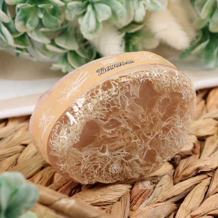 Мыло массажное с люффой "Ваниль" 100 г "Добропаровъ" бежевый