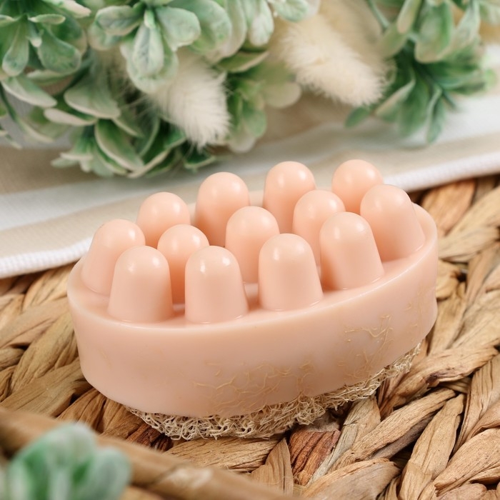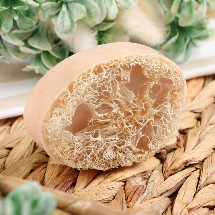 Мыло с люфой одновременно очищает кожу и скрабирует её. Это натуральное экологичное средство гигиены не вызывает аллергии.