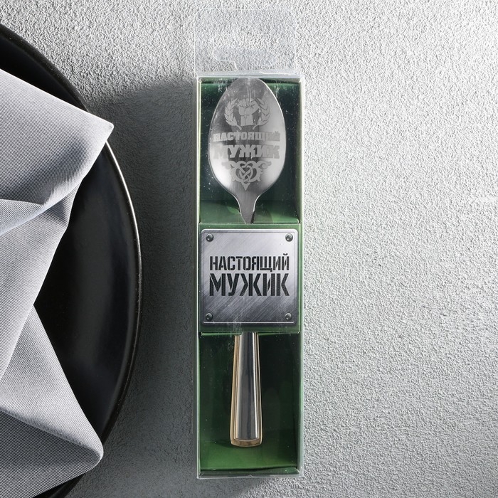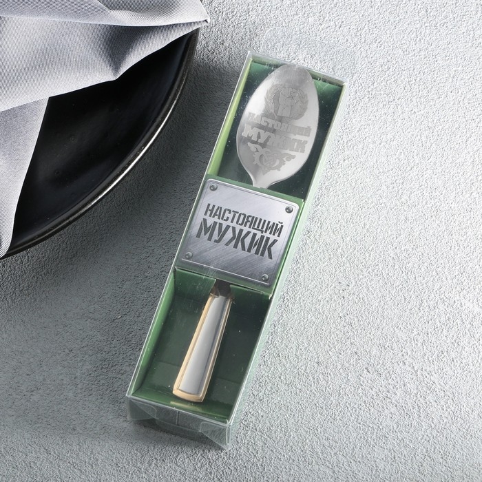 Ложка чайная с гравировкой «Настоящий мужик», в подарочной коробке, 3 х 14 см.