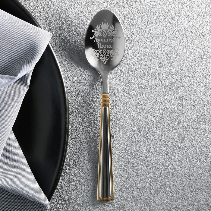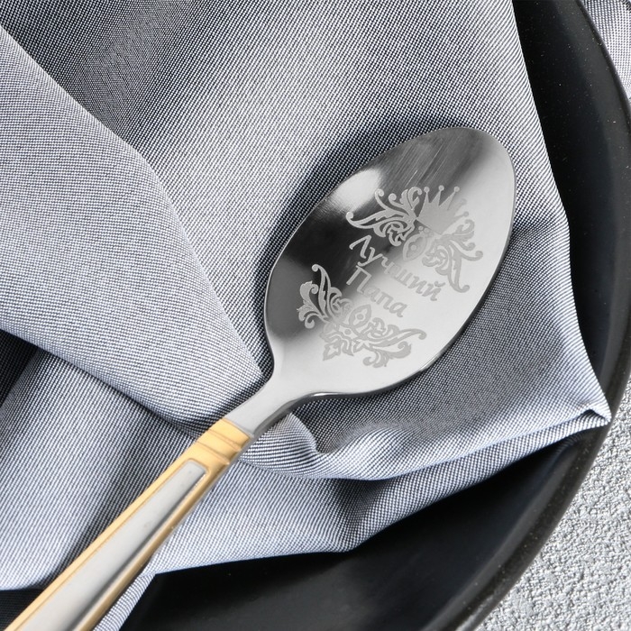 Ложка чайная с гравировкой «Лучший папа», в подарочной коробке, 3 х 14 см.