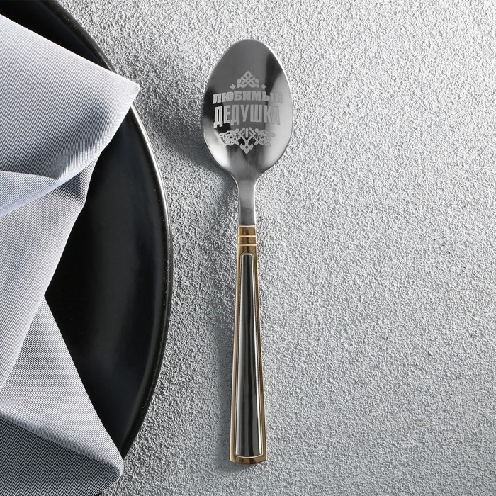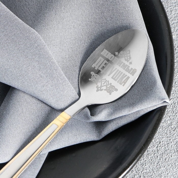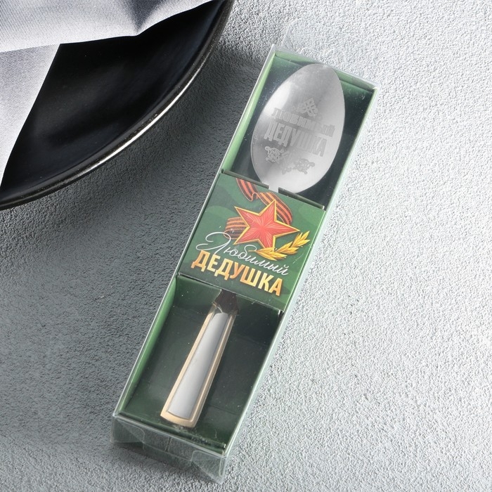 Ложка чайная с гравировкой «Любимый дедушка», в подарочной коробке, 3 х 14 см.