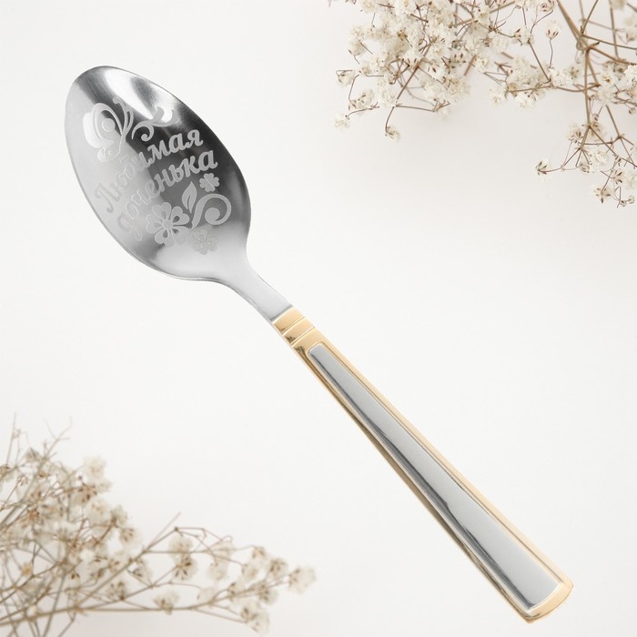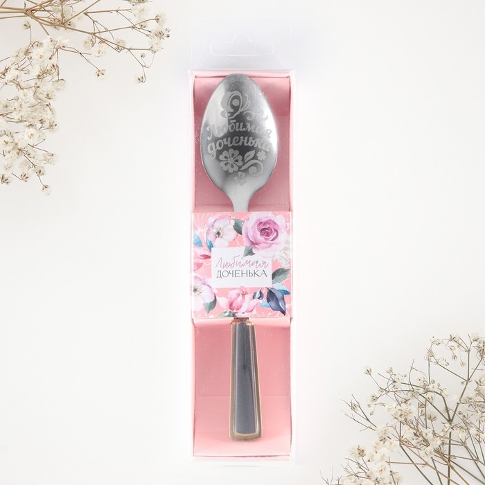 Ложка чайная с гравировкой «Любимая доченька», в подарочной коробке, 3 х 14 см. изготовлена из нержавеющий стали, узор нанесен на черпак при помощи лазерной гравировки – это позволяет использовать подарок по прямому назначению. Сувенир преподносится в индивидуальной подарочной упаковке с красочным дизайном.