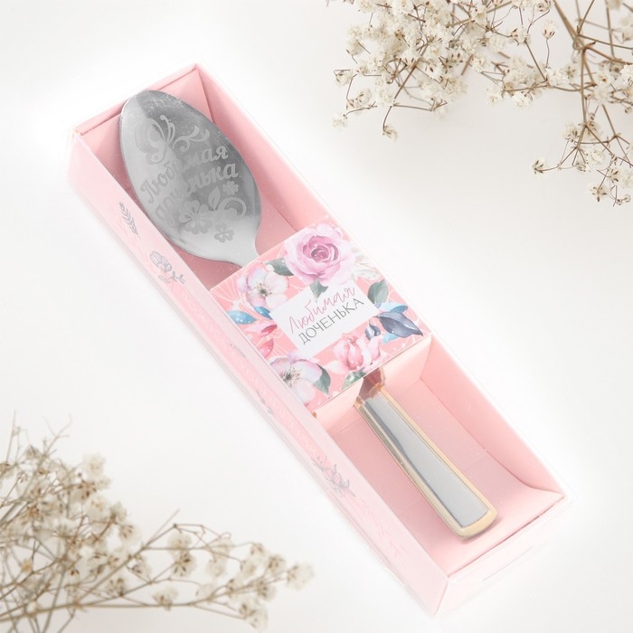 Ложка чайная с гравировкой «Любимая доченька», в подарочной коробке, 3 х 14 см.