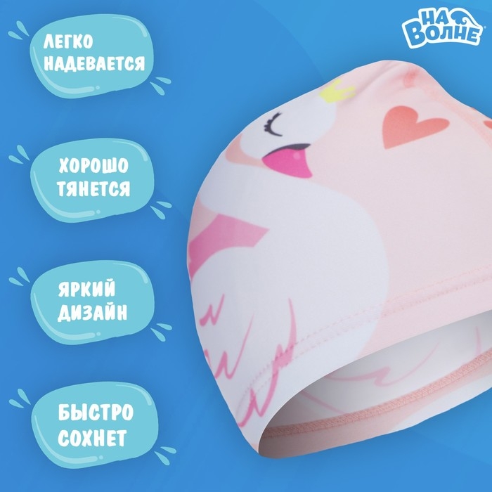 Шапочка для плавания детская «На волне» «Лебедь», тканевая, обхват 46-52 см