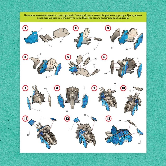 - Для лучшего скрепления деталей используйте клей ПВА (в комплект не входит).