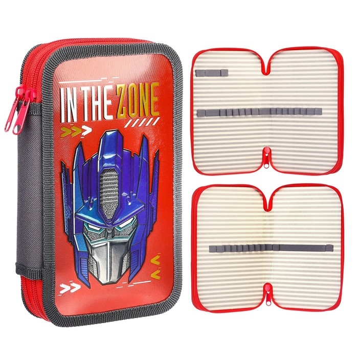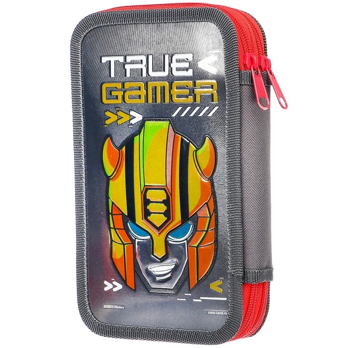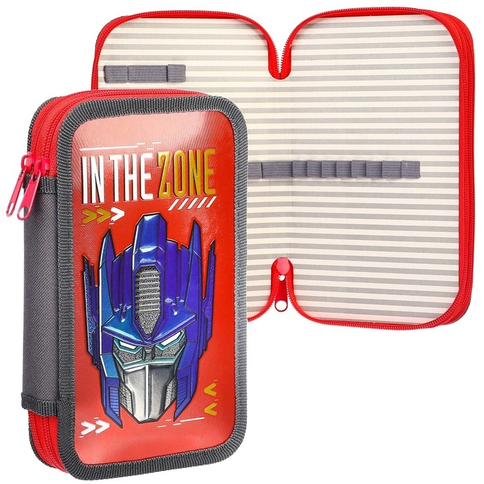Пенал каркасный с эффектом металлик, 2 секции, 125х205х40 мм, ламинированный картон, Трансформеры