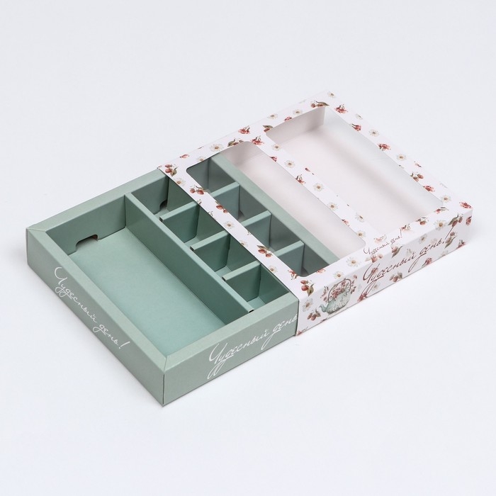 Коробка под 8 конфет + шоколад, с окном , "Чайный букет", тиффани, 17,7 х 17,85 х 3,85 см