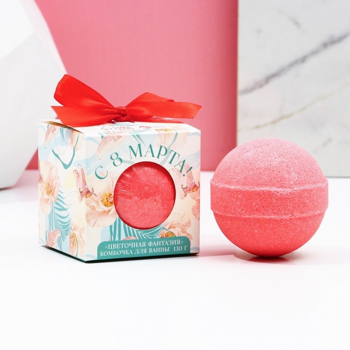 Бомбочка для ванны «С 8 Марта!», 130 г, аромат цветочный, ЧИСТОЕ СЧАСТЬЕ