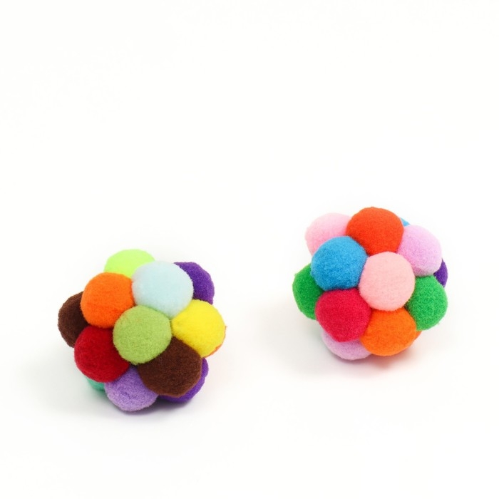 Набор из 2 игрушек "Полосатые шарики с перьями", диаметр шара 3,8 см, микс цветов