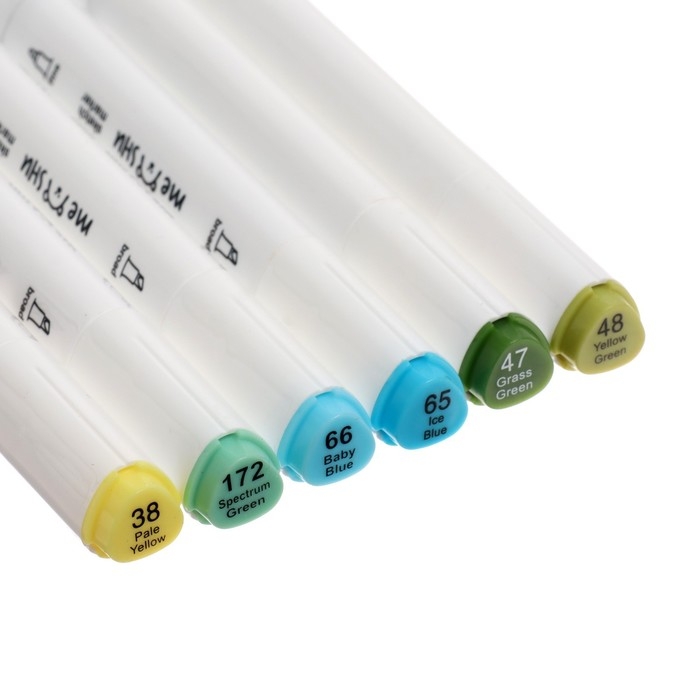 Набор двусторонних маркеров для скетчинга Meshu - идеальный выбор для художников, дизайнеров, иллюстраторов и любителей скетчинга, подходят для создания анимэ и манги. Эргономичный трехгранный корпус удобно лежит в руке и позволяет эффективно прорабатывать мелкие детали рисунка. Чернила на спиртовой основе - быстро высыхают, водостойкие, нетоксичны и не портят поверхность бумаги. Маркеры обладают пулевидным (2 мм) и скошенным (6 мм) наконечниками, что позволяет прорабатывать как мелкие детали рисунка. так и закрашивать большие области.
