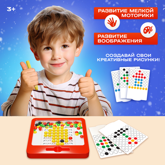 Планшет обучающий «Магнитное рисование», новогодний, цвет чёрный, 375 отверстий