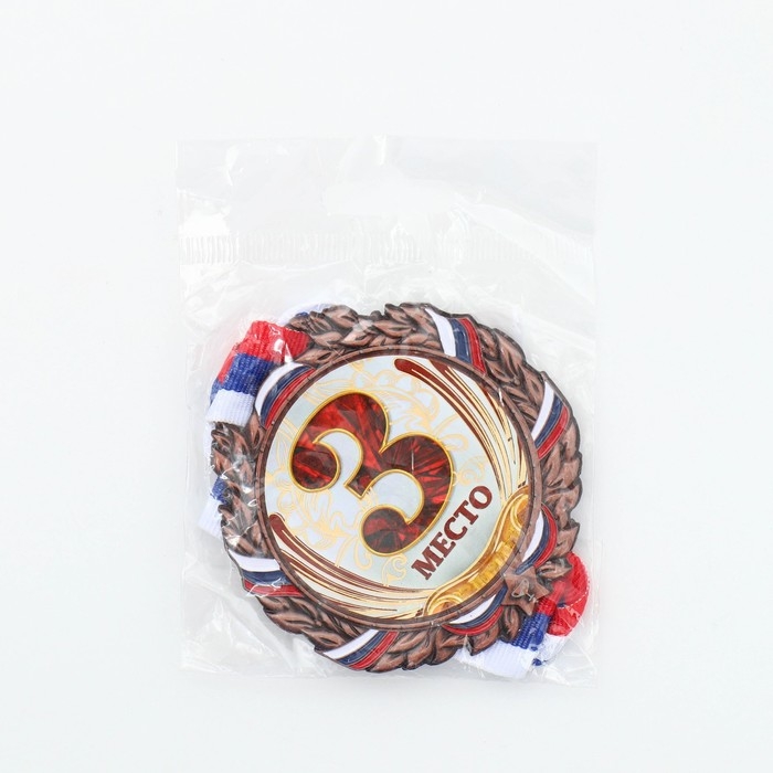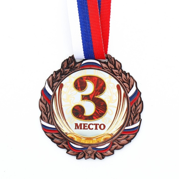 Медаль призовая 050, d= 7 см. 3 место, триколор. Цвет бронза. С лентой