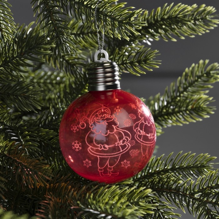 Ёлочный шар «Дед Мороз» красный, батарейки, 1 LED, свечение тёплое белое