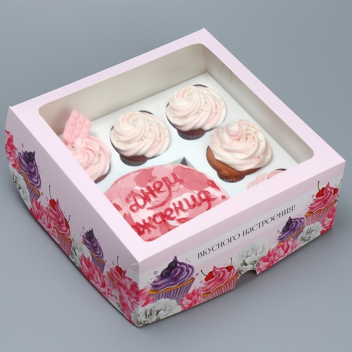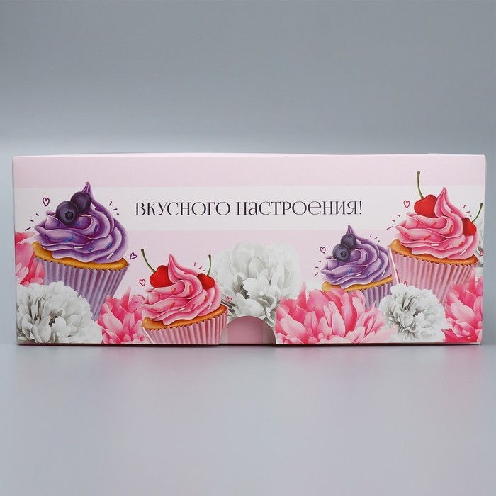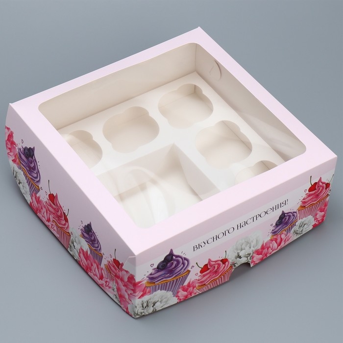 Коробка для капкейков и бенто-торта, кондитерская упаковка «Вкусного настроения», 25 х 25 х 10 см