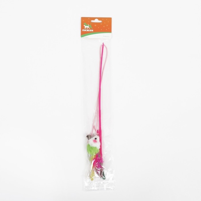 Дразнилка-удочка "Цветная мышка", 32 см, белая/зелёная мышь на розовой ручке