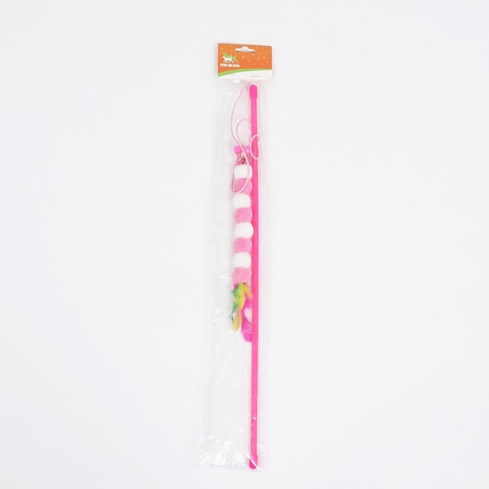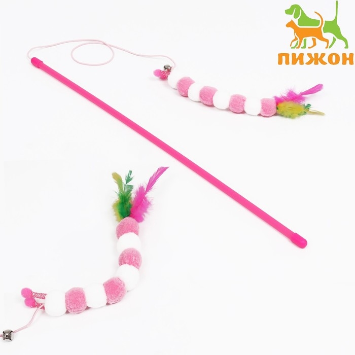 Дразнилка-удочка "Гусеница с перьями", ручка 49 см, розовая