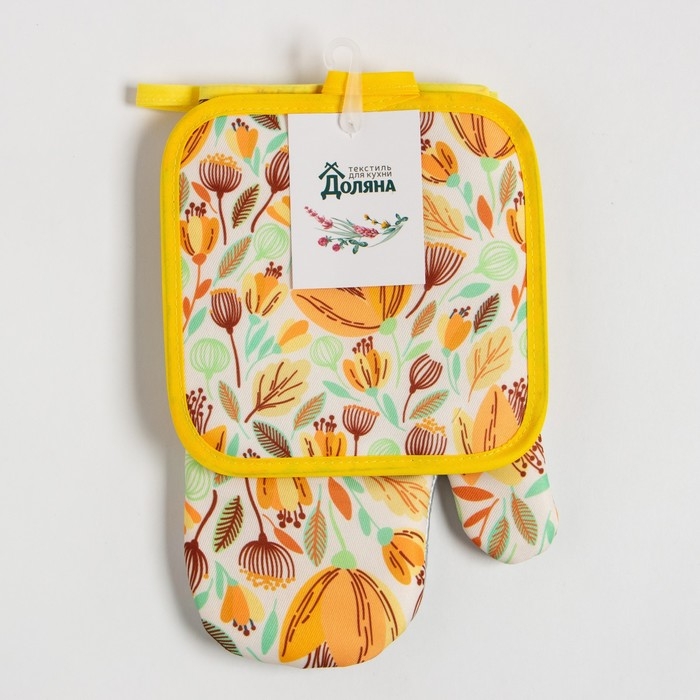 Кухонный набор Доляна "Тюльпаны" прихватка 17х17 см, варежка 25х16 см, 100% п/э