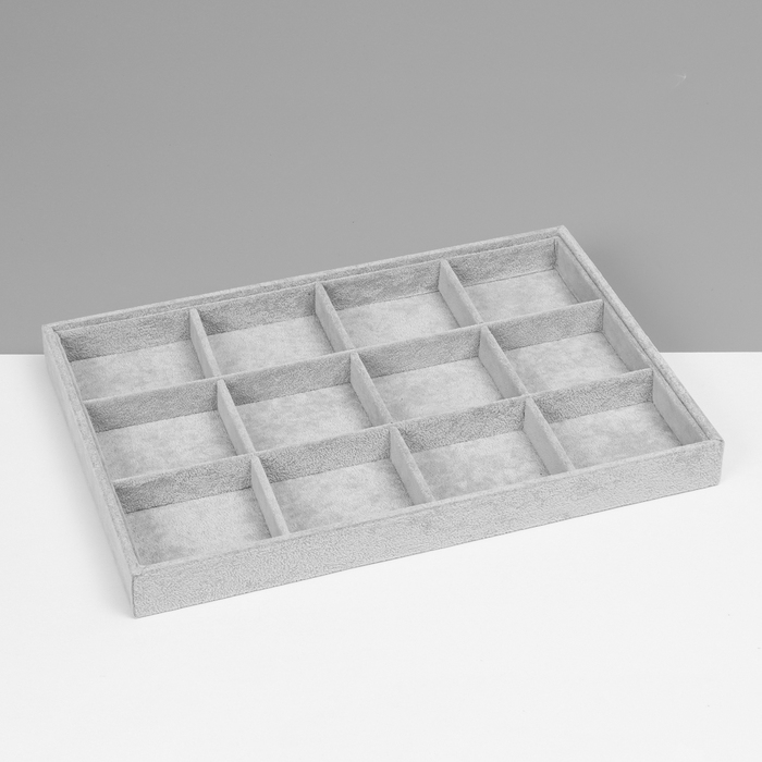 Подставка для украшений 12 ячеек, флок, 35×24×3, цвет серый
