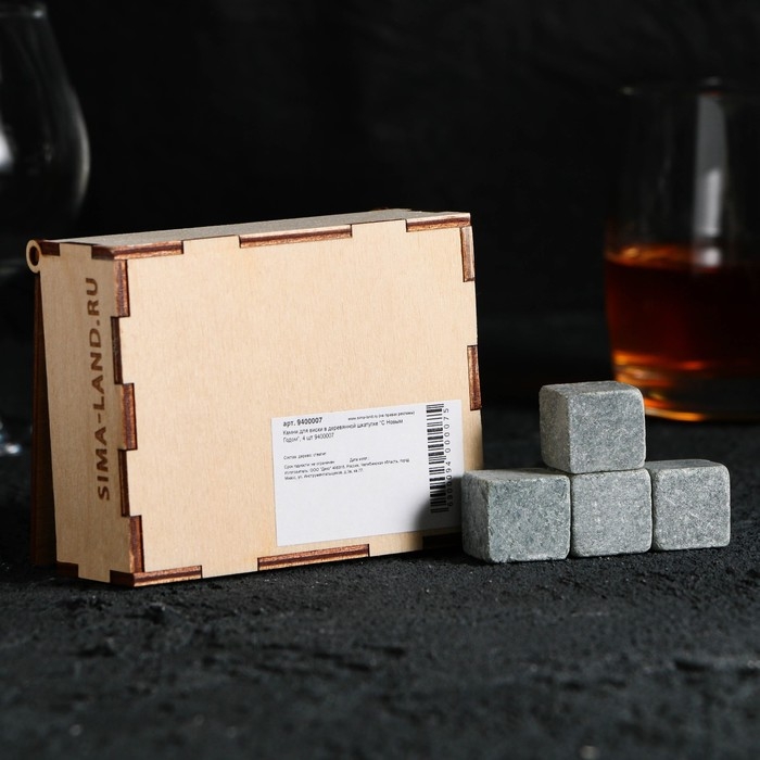 Новый год. Камни для виски в деревянной шкатулке «С Новым Годом», 4 шт