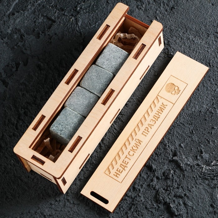 Камни для виски в деревянной шкатулке с крышкой «Недетский праздник», 4 шт