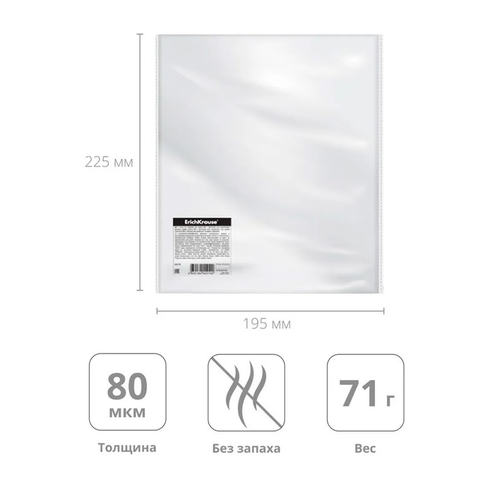 Набор обложек ПП 10 шт, 306 х 426 мм (А4), 50 мкм, ErichKrause "Glossy Clear", для контурных карт, атласов и раб.тетрадей, фиксированная, глянцевые