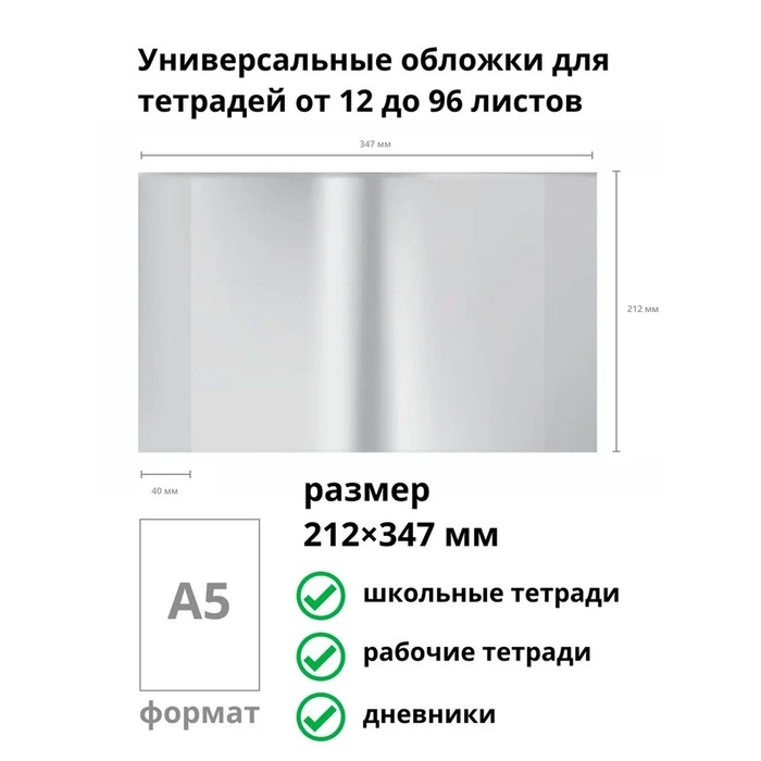 Набор обложек ПЭ 5 штук, 300 х 500 мм, 140 мкм, для учебников формата А4, универсальная, с закладкой, МИКС