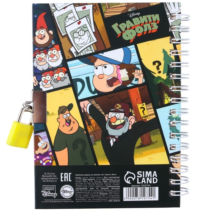 Записная книжка на замочке А6, 50 листов, Гравити Фолз