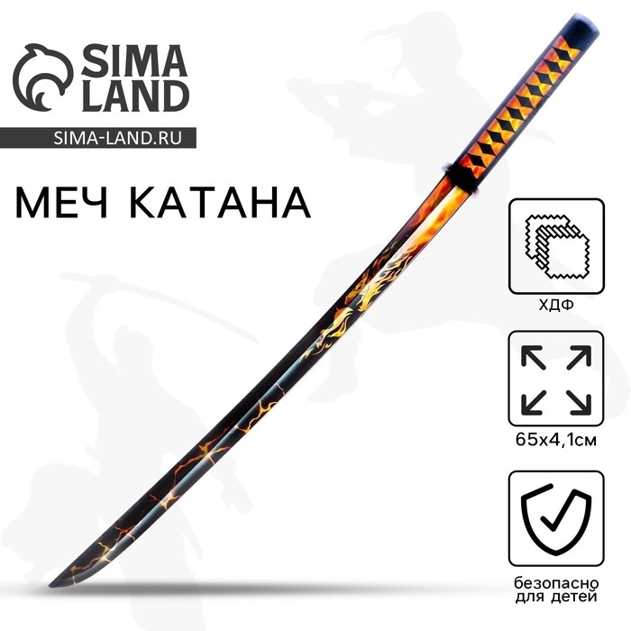 Деревянное оружие, детское сувенирное «Катана драгон с огнем», 65 х 4,1 см - это яркое и безопасное оружие для детей!