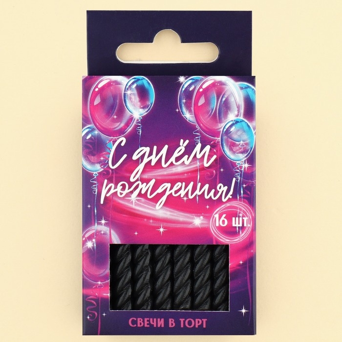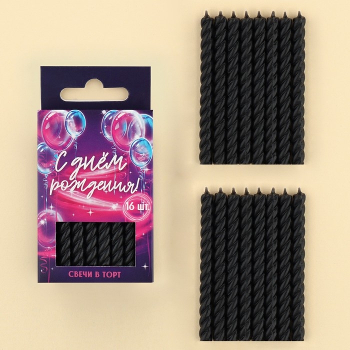 Свечи для торта, чёрные, 16 шт., 6,5 х 0,5 см