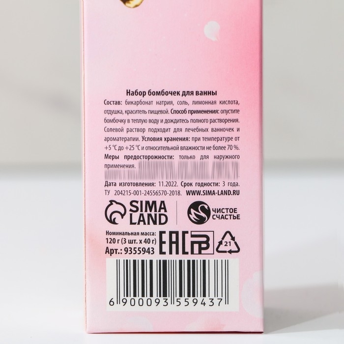 Подарочный набор косметики «Нежность весны», бомбочки для ванны 3 х 40 г, ЧИСТОЕ СЧАСТЬЕ