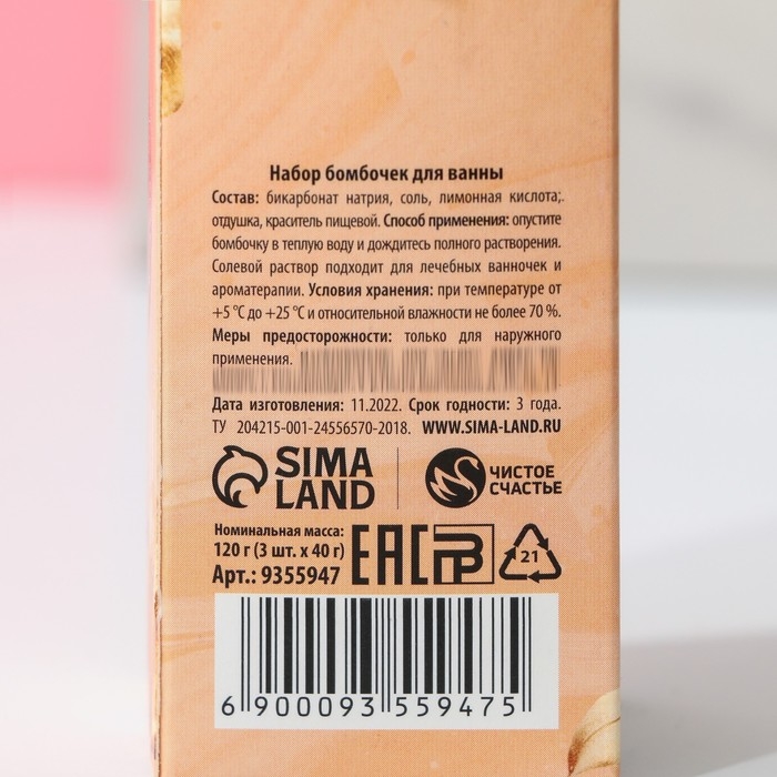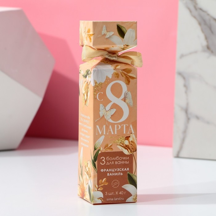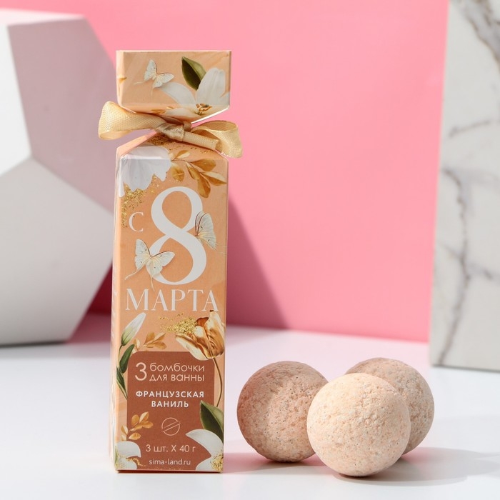Подарочный набор косметики «С 8 Марта!», бомбочки для ванны 3 х 40 г, ЧИСТОЕ СЧАСТЬЕ