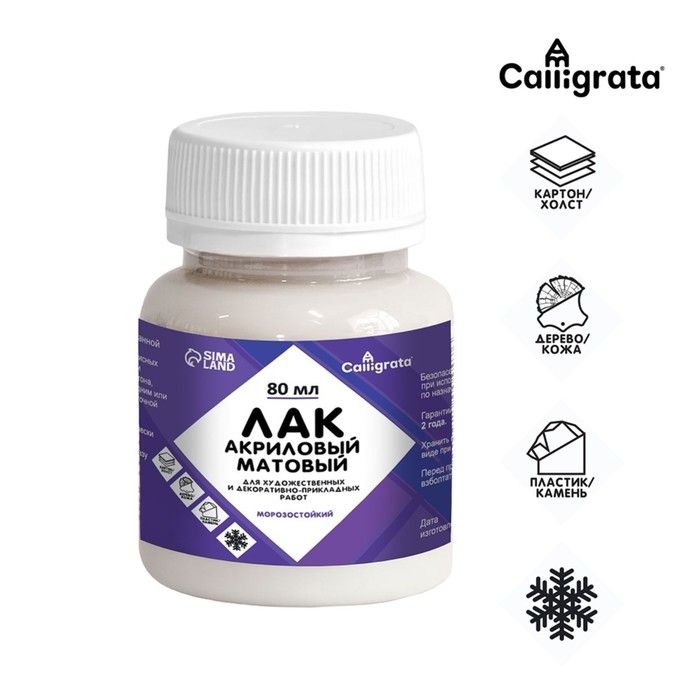 Лак акриловый матовый 80мл, Calligrata, на водной основе (морозостойкий)