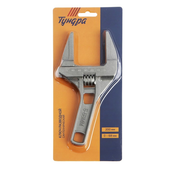 Ключ разводной сантехнический ТУНДРА, укороченная рукоятка, раскрытие губок до 68 мм, 200 мм