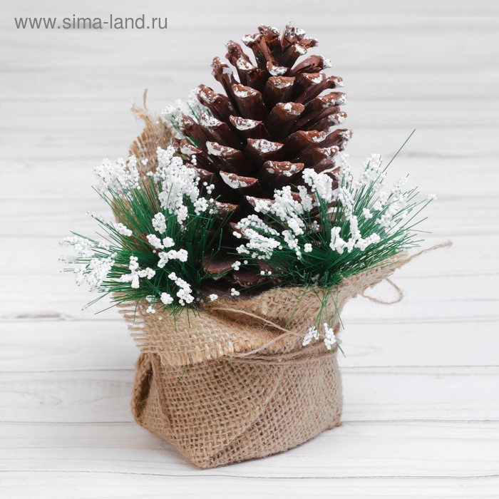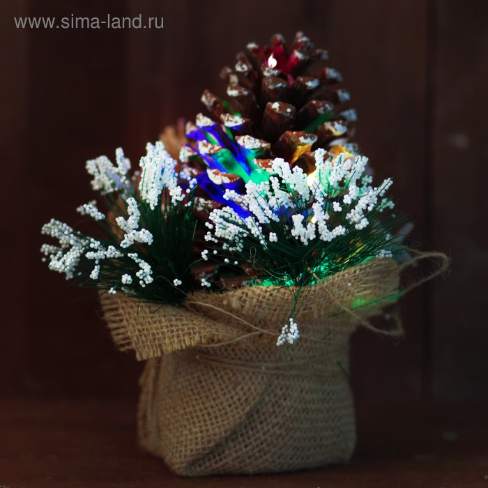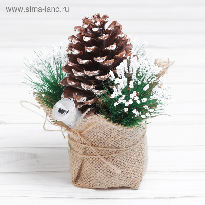 Декор сделан из натурального материала — лесной высушенной шишки. Подсветка работает от батареек.