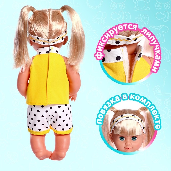 - Майка фиксируется липучками сзади, поэтому выглядит аккуратно и хорошо сидит на пупсике. А ещё с такими застёжками малышка сможет быстро переодеть куклу.
