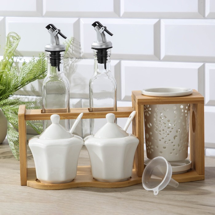 Набор фарфоровый для специй и соусов BellaTenero, 8 предметов: 2 ёмкости 250 мл, 5 баночек для специй, подставка, цвет белый