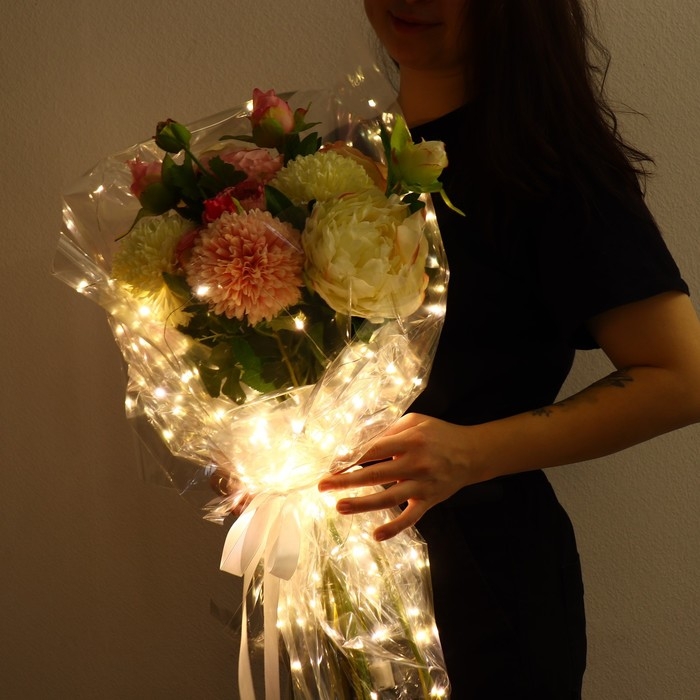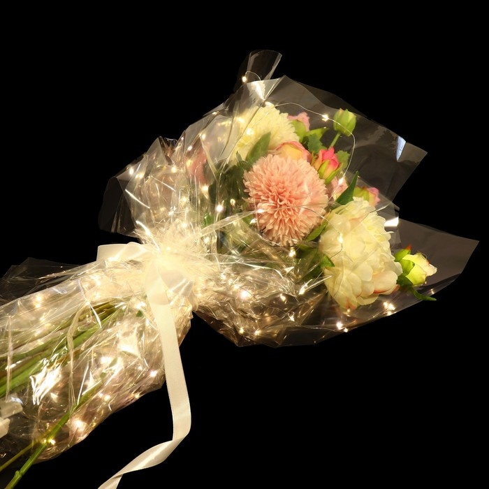 Плёнка для цветов упаковочная, с гирляндой, «Сияние звёзд», 60 х 60 см
