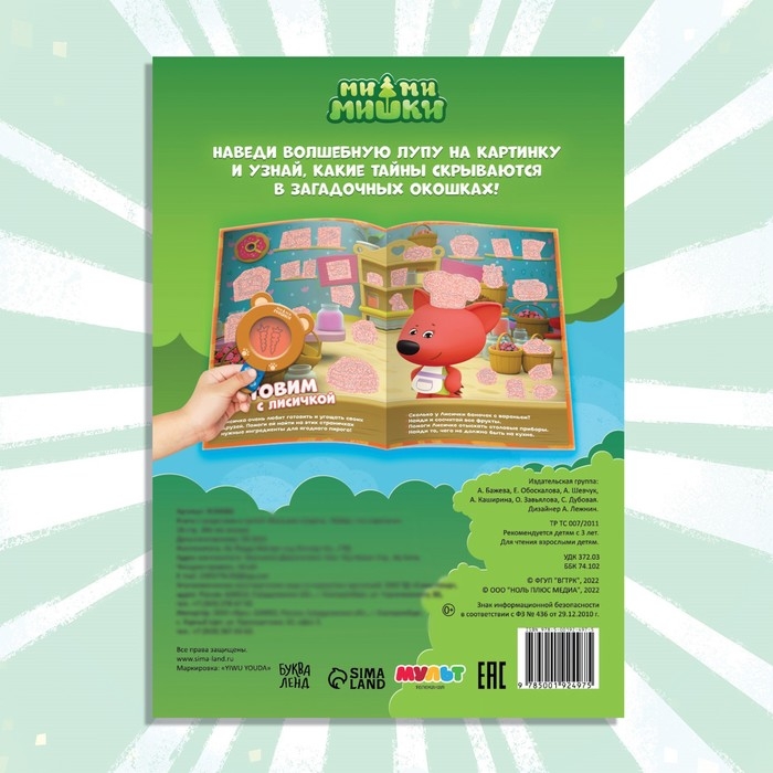 Отправляйтесь в увлекательное приключение вместе с озорными ми-ми-мишками! С помощью волшебной красной лупы откройте все секреты, которые ждут вас внутри книги.