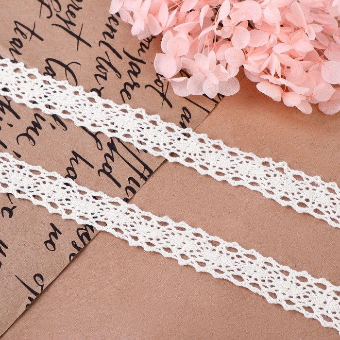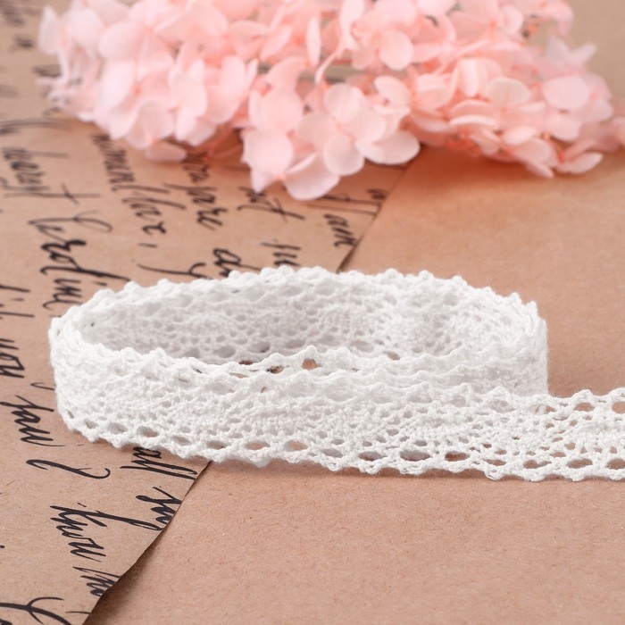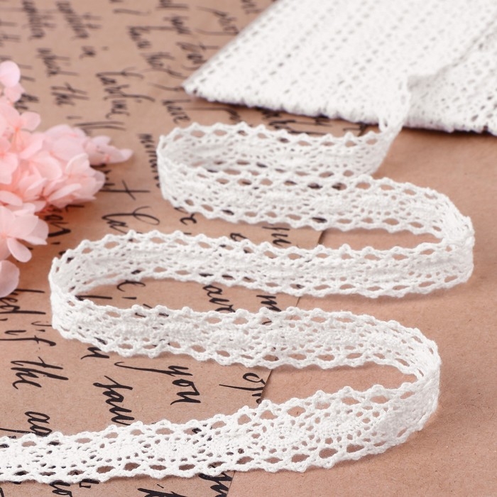 Кружево вязаное, 15 мм × 10 ± 1 м, цвет белый