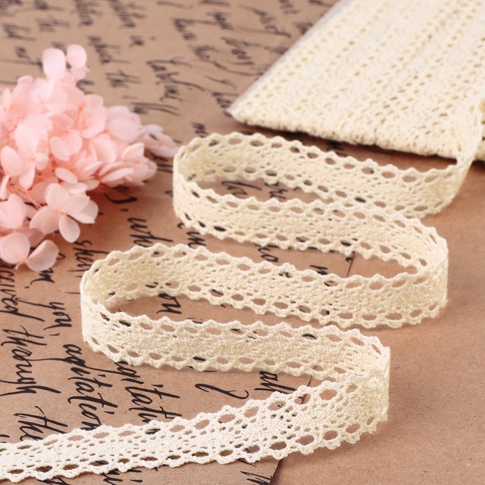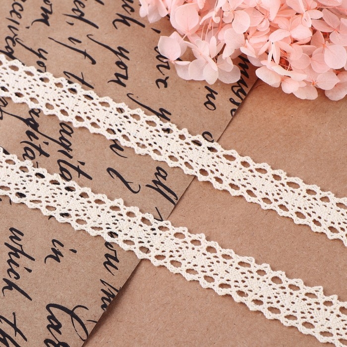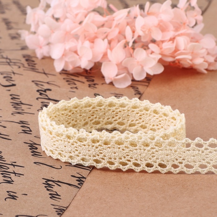 Кружево вязаное, 15 мм × 10 ± 1 м, цвет бежевый