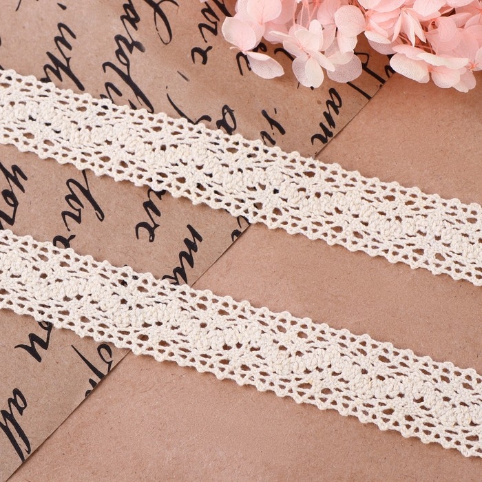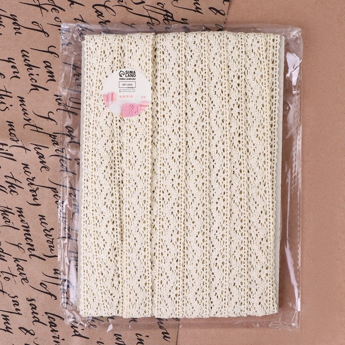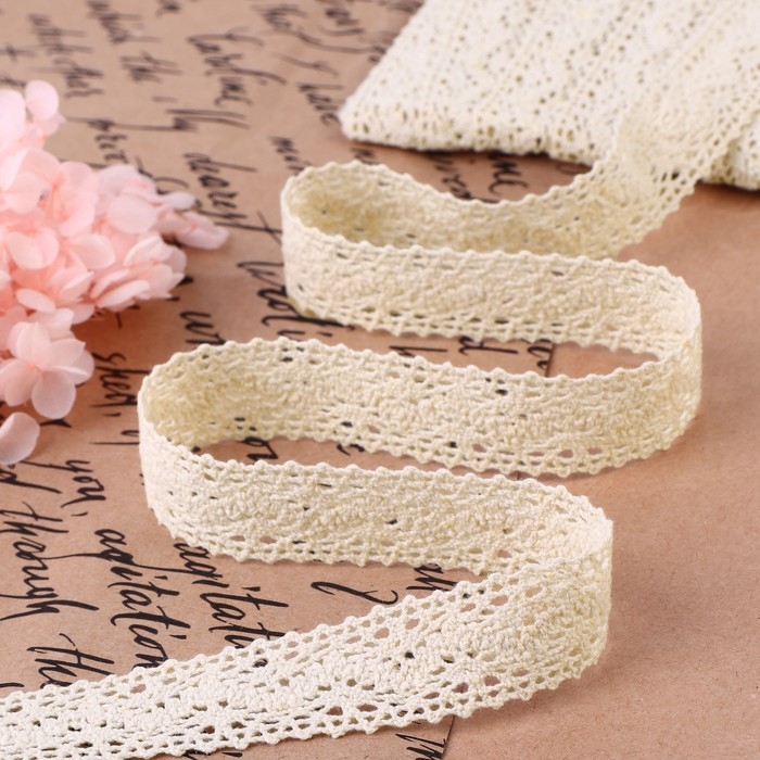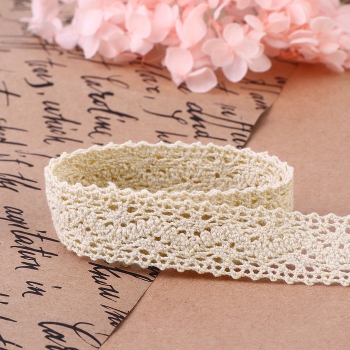 Кружево вязаное, 20 мм × 10 ± 1 м, цвет бежевый