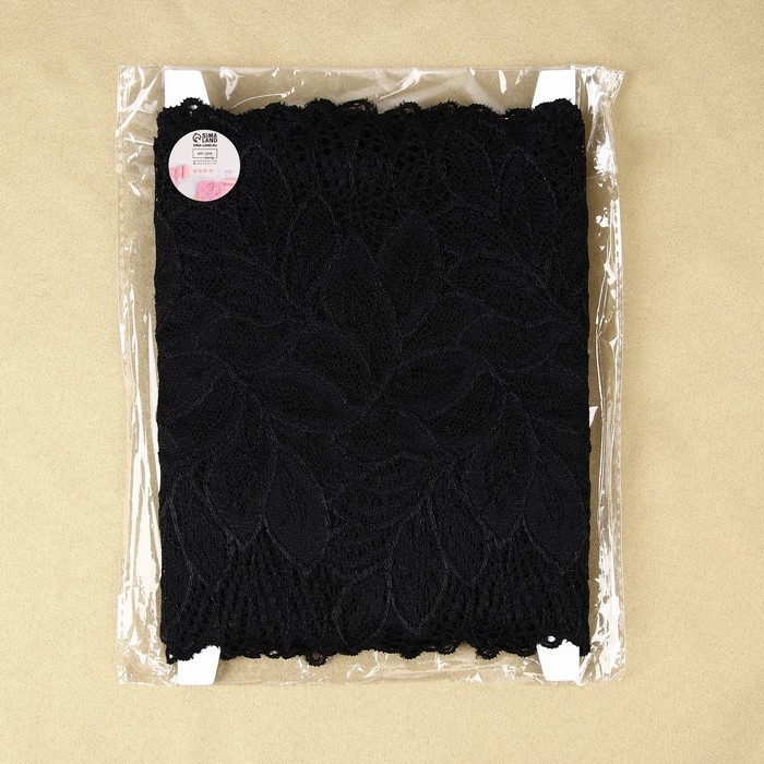 Кружевная эластичная ткань, 185 мм × 2,7 ± 0,5 м, цвет чёрный