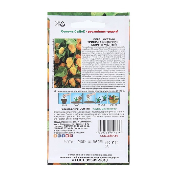 Семена перец острый "Тринидад Моруга Скорпион желтый "F1 б/п 5шт