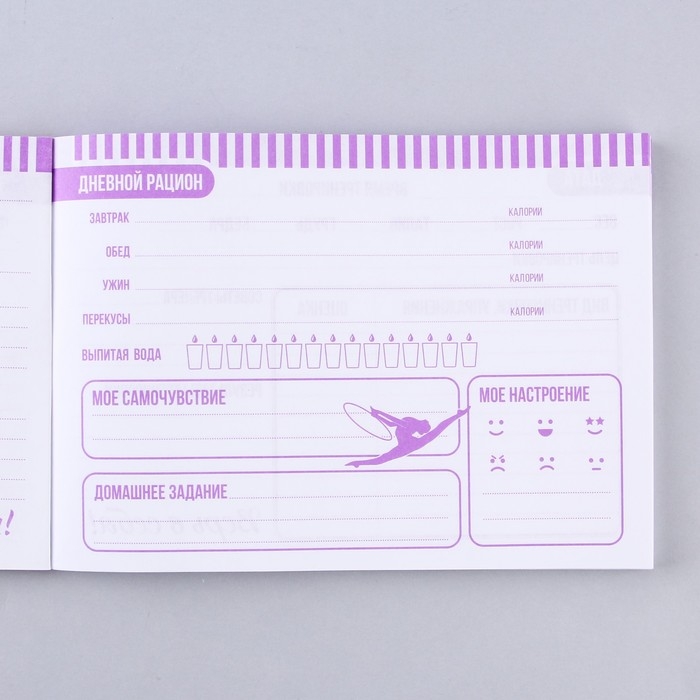 Удобный формат позволяет брать дневник на тренировки и соревнования. А яркий дизайн мотивирует не останавливаться на достигнутом.