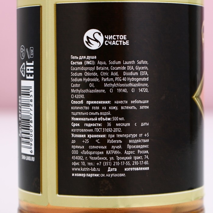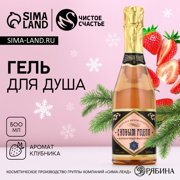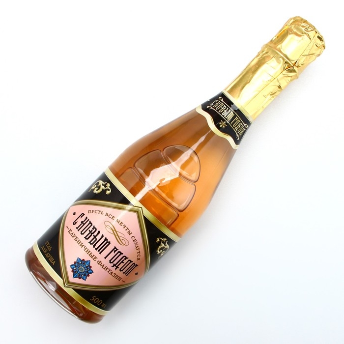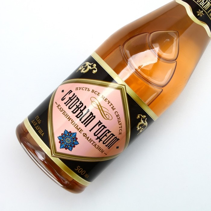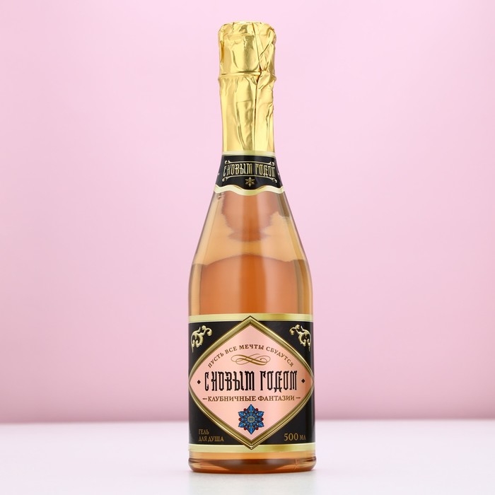 Гель для душа во флаконе шампанское «С Новым Годом!», 500 мл, аромат клубники, ЧИСТОЕ СЧАСТЬЕ