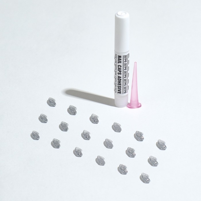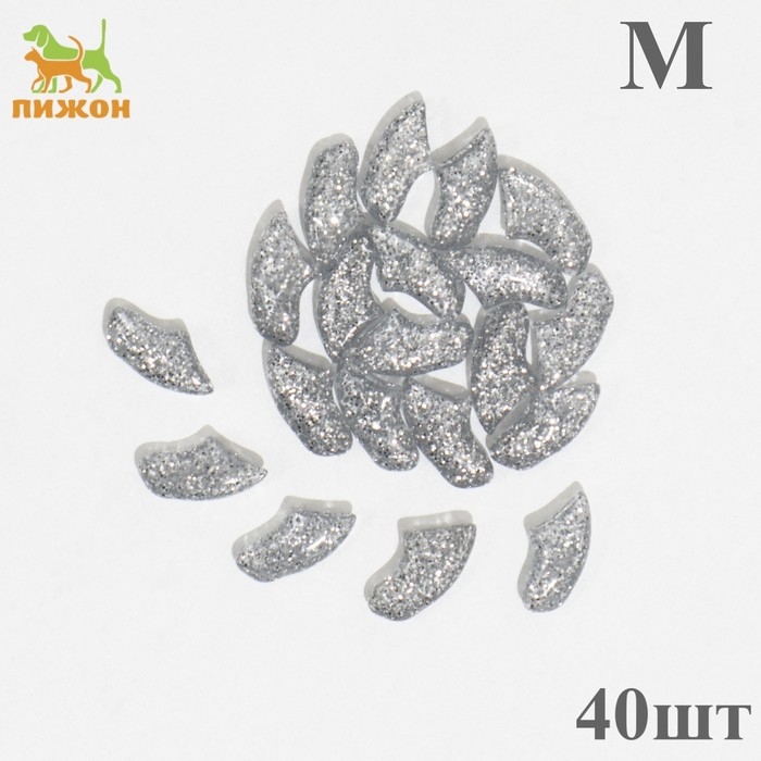 Когти накладные "Антицарапки" (40 шт), размер M, серебряные с блестками