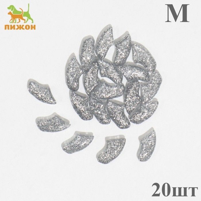 Когти накладные "Антицарапки" (20 шт), размер M, серебряные с блестками