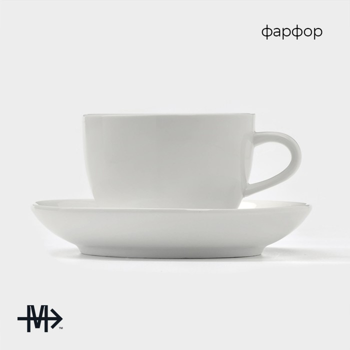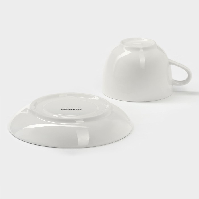 Чайная пара фарфоровая Magistro «Бланш», 2 предмета: чашка 250 мл, блюдце d=15,5 см, цвет белый