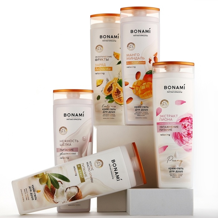 Гель для душа с экстрактом манго и папайи, заряд бодрости, 400 мл, аромат экзотических фруктов, BONAMI